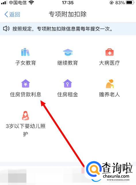 再点击【住房贷款利息】。