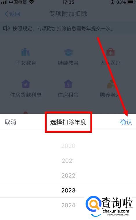 选择年度,点击【确认】。