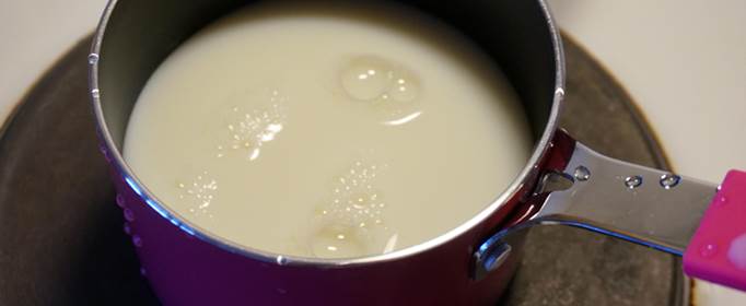 1、放在炉子上煮热,煮时用火要适当(较小),且须边煮边搅拌,以免锅底和锅边的奶受热过快而发生焦结。当煮至表面有热气时,即可关火不必煮沸;