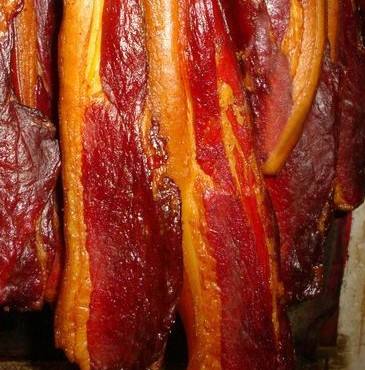 湖南腊肉是湖南的一道特色菜,以湖南安化腊肉和湘西腊肉最为出名。体形大,颜色黑,熏得干,肉质细,味道香。