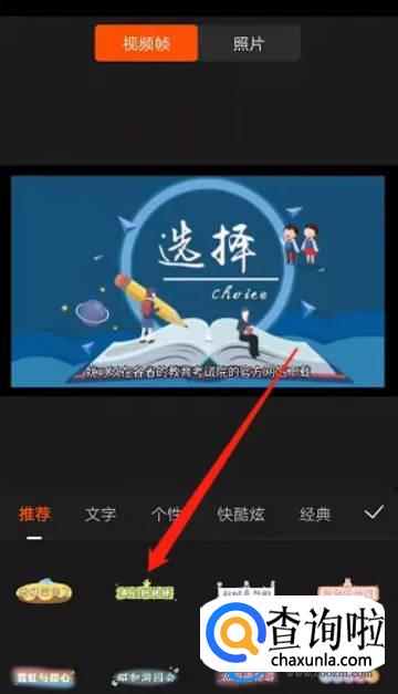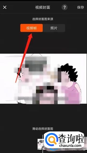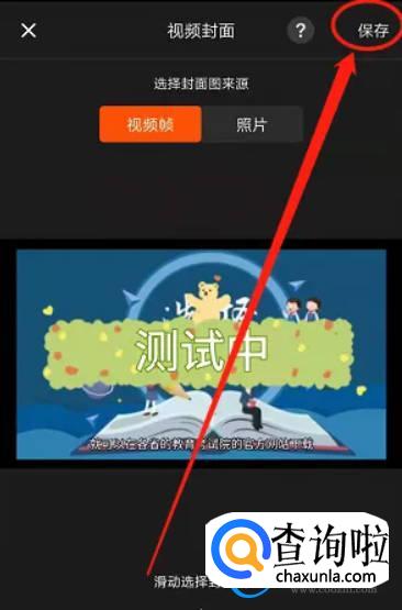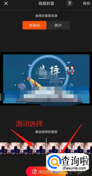 此时可以使用视频帧和图片设置封面界面,可以使用视频帧,滑动视频选择较好的封面。