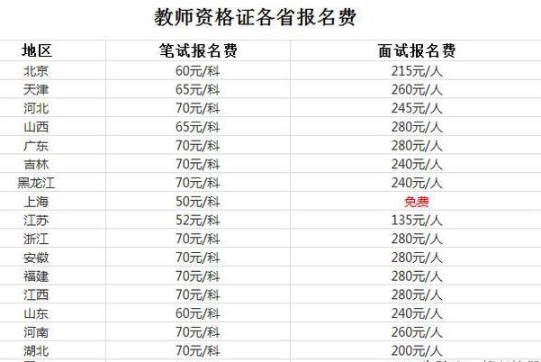笔试报名费用各地收费不同,各省单科收费在50-70元不等,面试报名费也是各地不同,大概为每人135元-390元不等,大部分地区围绕250元基准波动,280元居多。