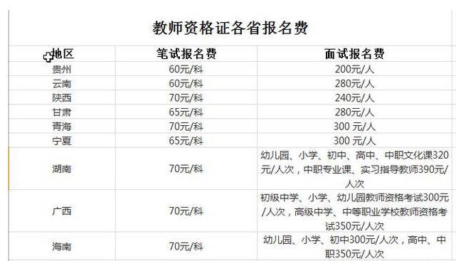 笔试报名费用各地收费不同,综合2021年公告的省份和没出公告往年的价格,教师资格证笔试收费标准,各省单科收费在50-70元不等,花费最贵的是在70元区报名中学学段的考生,总共要210元。