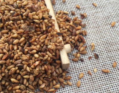 把柏树籽的外壳去除(外壳特别容易糊),清洗干净后,晾干水份。