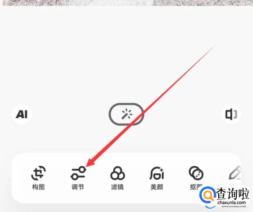 在“编辑”弹出下拉工具条中,点击【调节】图标打开。
