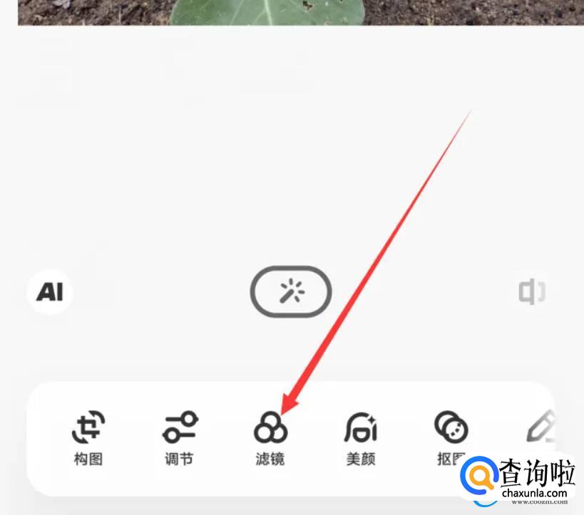 在“编辑”弹出下拉工具条中,点击【滤镜】图标打开。