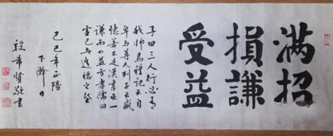 《尚书》中的完整表述是这样的:“满招损,谦受益,实乃天道。”意思就是说:骄傲自满就会收到损害,谦虚谨慎就会获得益处,这是上天所规定的。既然是上天所规定的,那当然是正确的。