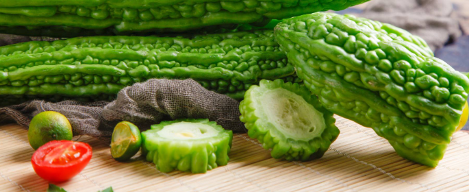 1、苦瓜。苦瓜含胡萝卜素、尼克酸、抗坏m酸、粗纤维、苦瓜素人体所需的多种营养物质。其性昧苦寒,而有清热解毒、清心消署、明目降压之功效。