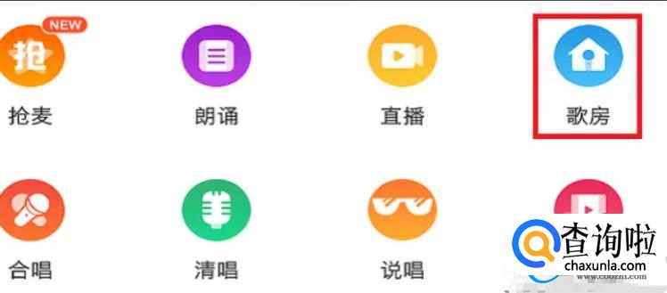 然后,我们在【点歌】的界面中,可以看到其它8个分类,而这其中就有我们要找的【歌房】,点击它并且进入。