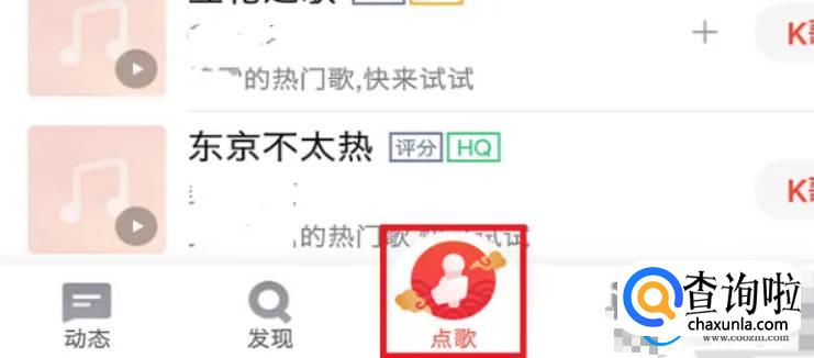 我们在进入到全民k歌的主界面后,看到下方的那一排菜单栏。我们点击中央的【点歌】按钮。