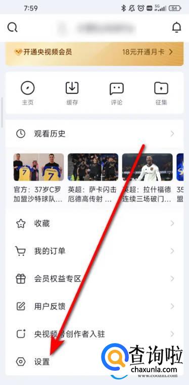 在个人中心下拉界面,选择【设置】选项。