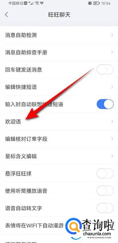 点击“欢迎语”。