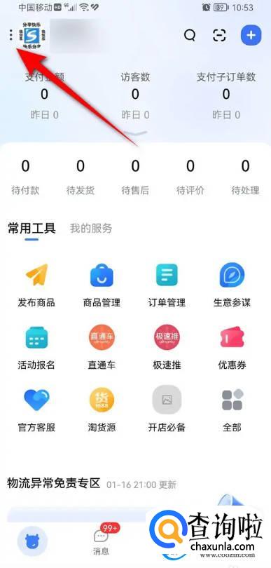 打开千牛,点击左上角的竖三点图标进入。