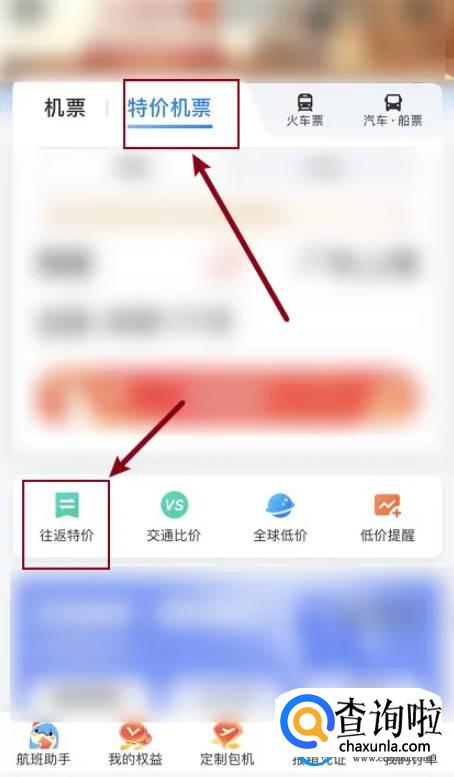 或者点击【特价机票】,输入起止地搜索,这样可以买到便宜优惠的机票
