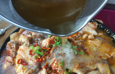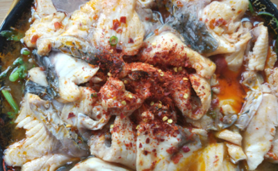 最后,淋上热油,全油沸腾水煮鱼就做好了。