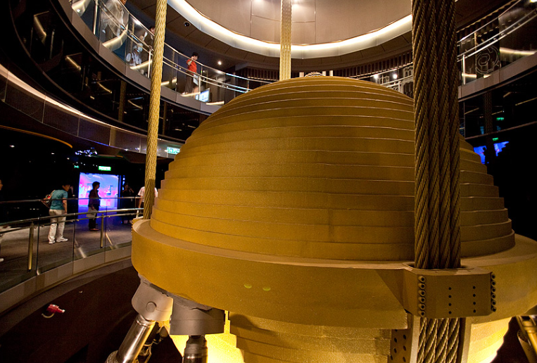 为了因应高空强风及台风吹拂造成的摇晃.大楼内设置了“调谐质块阻尼器”(tuned mass damper,又称“调质阻尼器”),是在88至92楼挂置一个重达660公吨的巨大钢球,利用摆动来减缓建筑物的晃动幅度。据台北101告示牌所言,这也是全世界唯一开放游客观赏的巨型阻尼器,更是全球最大之阻尼器。