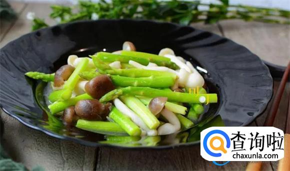 芦笋和蘑菇是两种富含膳食纤维和维生素C的食品。将它们用橄榄油和酸橙汁翻炒,再用大蒜和黑胡椒腌制,就做出了极具营养价值的炒芦笋和蘑菇。