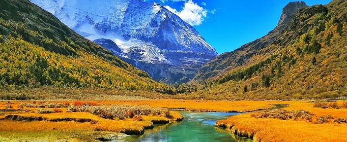 稻城亚丁在秋季的9月下旬~11月初的景色最美,此时是高原地区天气最为稳定的季节,一般不会下雨,几乎都是蓝天白云的大晴天。稻城亚丁最美的季节也一定是每年的9月下旬到11月初,此时整个景区都是千树万树的黄叶,愈到秋深,愈是亮眼,远远看去,就像火焰在滚动。草地与黄色的万亩杨树林让稻城变成了色彩的海洋,雪山在蓝天白云的衬托下,更显得如梦如幻,这个时间段的风景尤其迷人,适合前去旅行。
