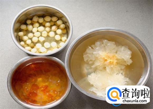将莲子洗净,泡在清水中浸泡2小时,将泡软的莲子去皮,洗净备用。