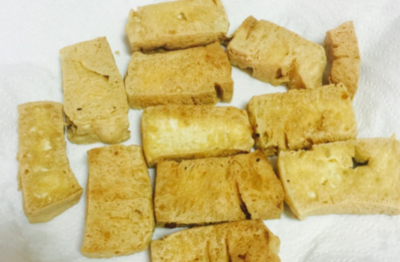 最后,用锡纸包好,不用包太紧。把豆腐放在阴凉处发酵三天,每天打开锡纸换一次气。三天后豆腐上面会有粘液,如果温度够高会有黄色的毛就说明发酵成功了。