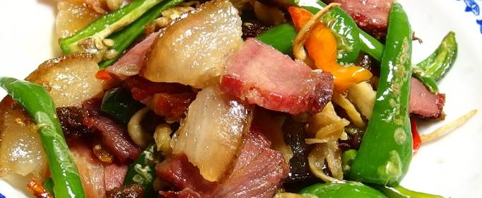 例如:青椒炒腊肉、腊肉炒蒜苔、蒜苗腊肉、腊肉炒葱椒、腊肉炒秋葵、腊肉炒冬笋、腊肉炒荷兰豆、腊肉炒杏鲍菇、腊肉炒饭等。