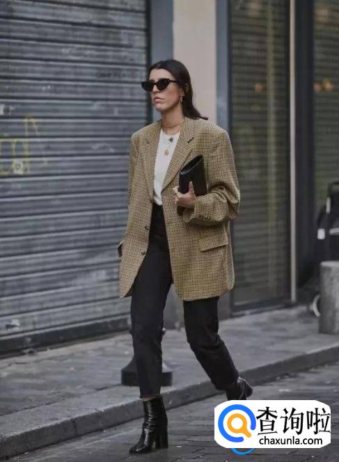 用西装搭配直筒裤,这个穿衣法则简直怎么穿怎么时髦,警示对我们的身高和身材没有任何要求,就连肤色偏黄的女人穿上以后都能够把皮肤反衬一个色度,因为搭配上卡其色的西装和黑色的直筒裤以后,超级显白呀!