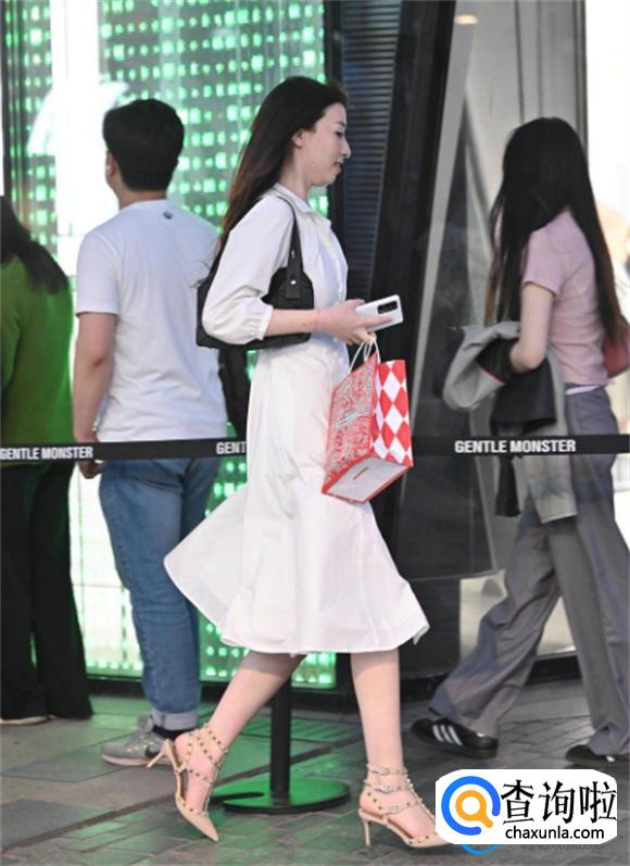 细跟凉鞋是最容易搭配的高跟鞋之一,既能展现修长的腿型,又不会过于招摇。一位时尚美女选择了米白色的细跟凉鞋,搭配了浅褐色的薄纱连衣裙和白色的羽绒服,衣着舒适又优雅。而在另一次搭配中,美女搭配了一件白色的连衣长裙和米白色的尖头细跟鞋,整个搭配简约又不失气质。