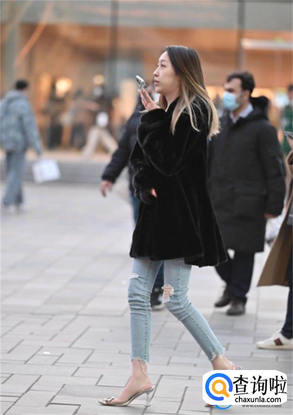 透明的细跟凉鞋也是时尚的选择,能够给整个搭配带来不同的风采。这位美女选择了透明的细跟凉鞋,搭配了一条毛边的牛仔裤和一件黑色的皮草外套,整个搭配显得十分有层次感。