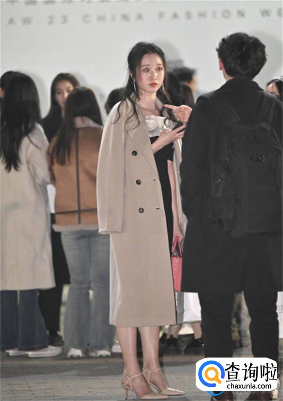 另一位美女选择了米黄色的尖头细跟凉鞋,搭配了黑色的修身连衣裙和米白色的点缀,整个搭配看起来十分有层次感。再加上一件米黄色的呢子大衣,整个搭配简约而不失高贵和时尚。 - 05