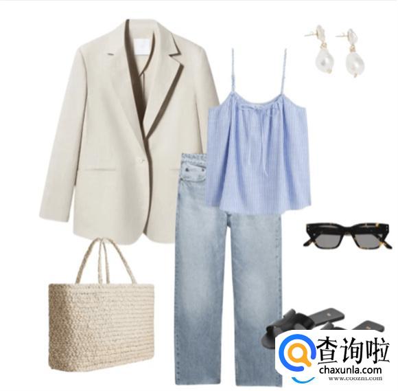 我们可以从颜色入手,例如选择一件柔粉色的大领衬衫,再搭配一条阔腿珍珠白长裤,整个着装就是明亮温柔的色调。米色系西装也是一个不错的选择,能让肤色显得更白,而且穿衣质感更好。搭配一下浅蓝色小吊带和牛仔裤,就能轻松打造出自然简约的穿搭风格。 - 02