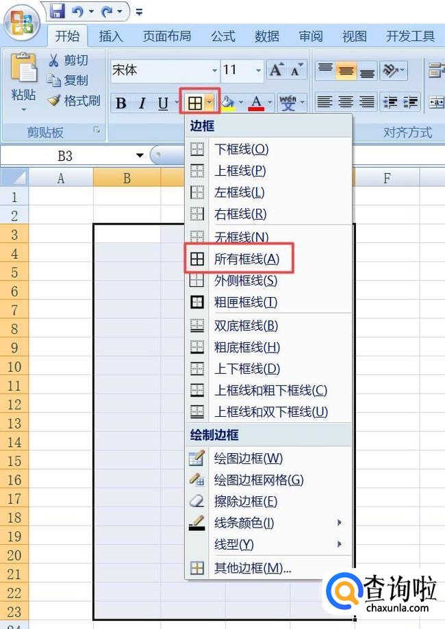 之后我们点击边框按钮,弹出的界面,我们点击所有边框;
