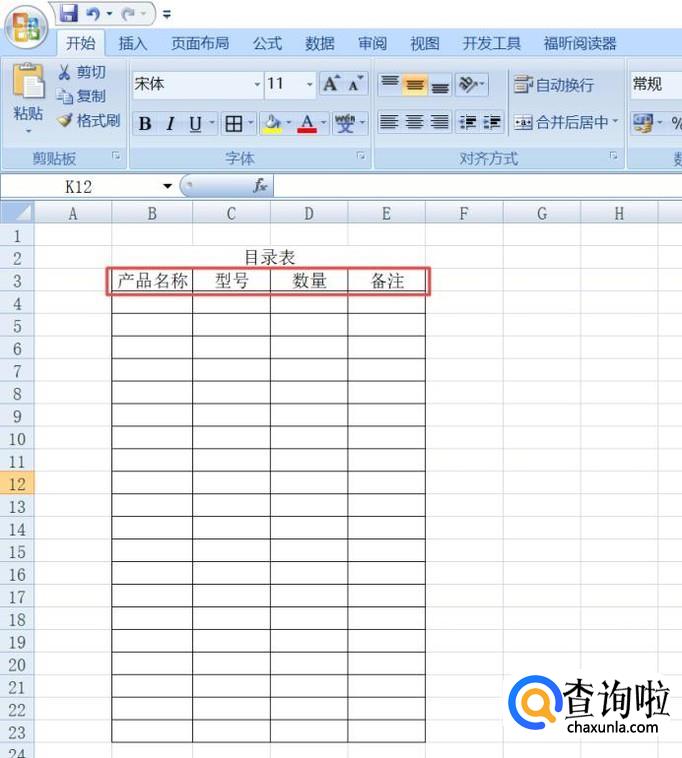 然后我们在表格中输入产品名称、型号、数量、备注,这样我们就制作好目录表了。