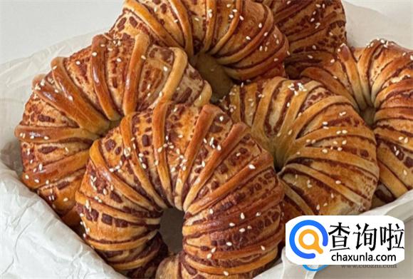 6、发酵好的面包胚,表面刷上蛋液,撒上白芝麻,送进预热好的烤箱,中层180度18分钟即可