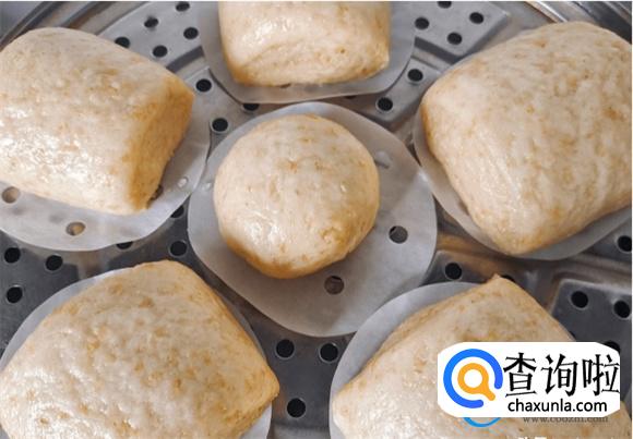 3、将卷好的长条切成大小适量的小剂子,盖上保鲜膜,二次醒发20分钟,醒发好的小剂子体积变大一倍,拿在手上轻飘飘的,这时将剂子放入蒸锅,大火烧15分钟后关火焖5分钟即可出锅啦~