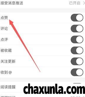 在设置页面上方点击消息提醒,打开之后在页面下方找到点赞开关。