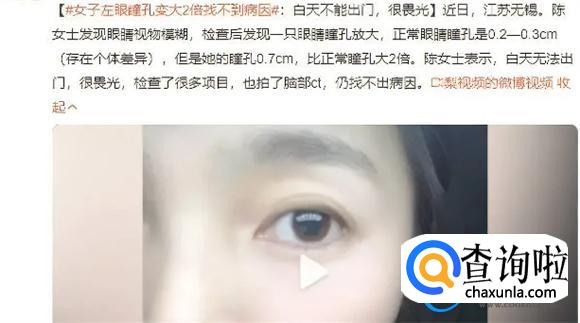 女子左眼瞳孔变大2倍找不到病因 瞳孔为何会突然扩大