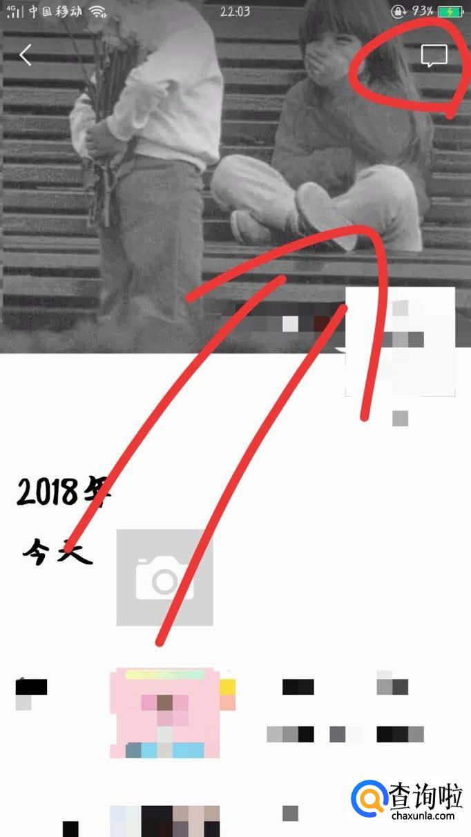 进入个人相册,点击右上角的消息图标。