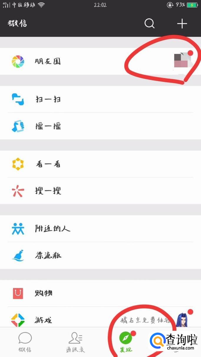 当微信有系统通知时,发现及朋友圈将有红点提示,点击即可查看消息通知。