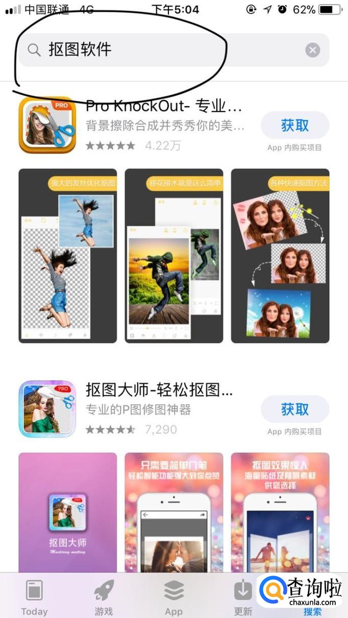 打开你的iPhone,点击App Store,然后在“搜索”中搜索——抠图软件,小编这里随便选择了一个下载,如图所示。