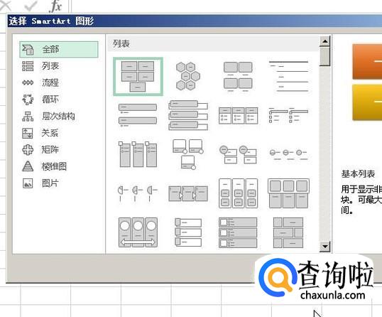 右边展示各种流程图,我们从中选择一种。在这里选择基本流程图。