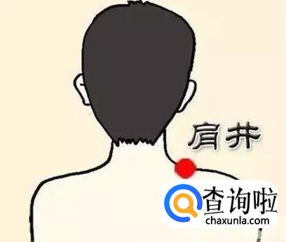 【取穴定位】在后颈根部第7颈椎与肩峰之间的中点处。