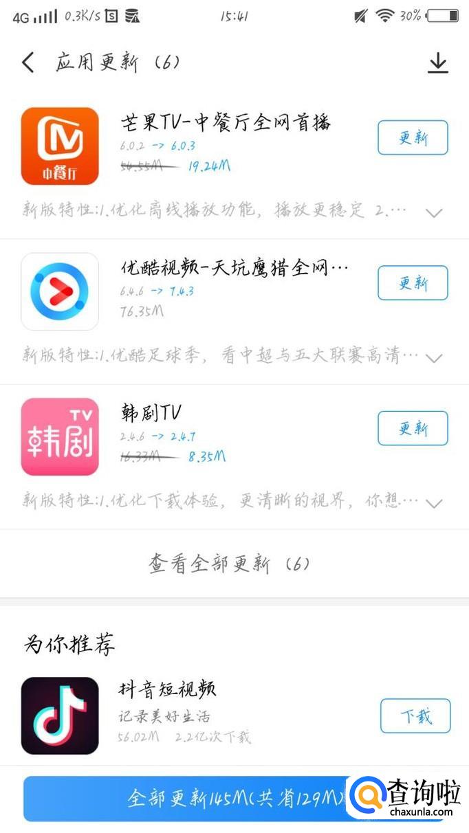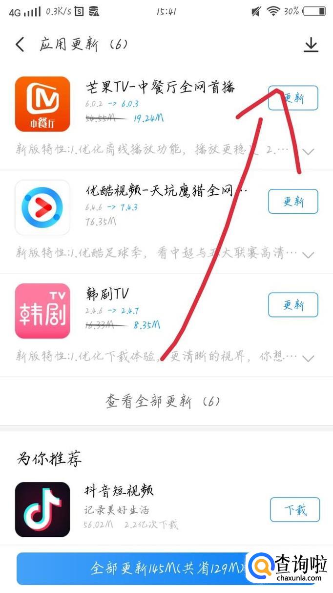 在这个界面,你可以看到要更新的应用,点击“更新”选项,如图1箭头所示。这样就更新啦。