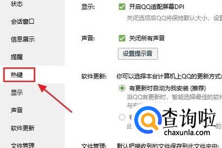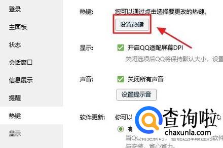 在该对话框的左侧我们点击“热键”,然后对应的右侧界面最上方找到“设置热键”,如图所示;