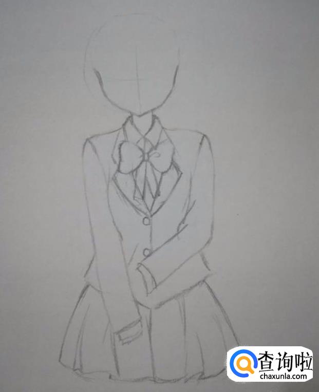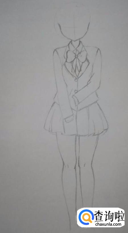 然后是画出下半身的衣服,我这里画的是百褶半身裙。
