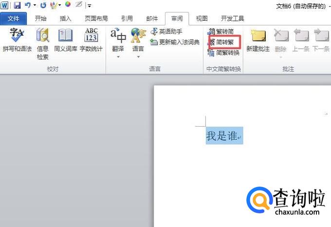 简体转化为繁体的话,我们点击简转繁;