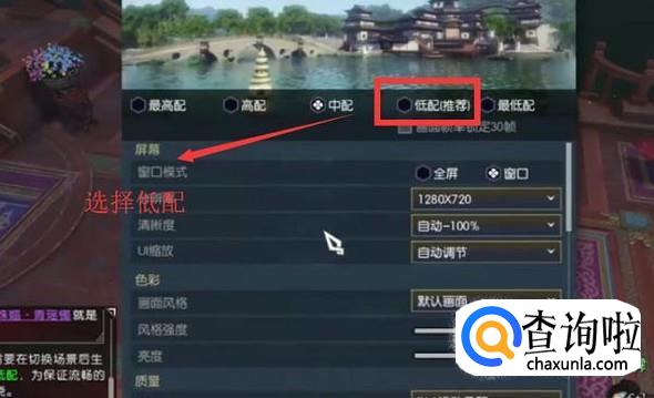 接下来在弹出的画面中选择低配的画面,如下图所示