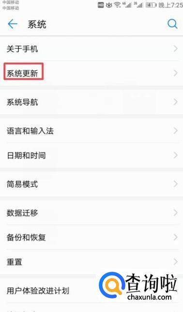弹出的界面,我们点击系统更新;