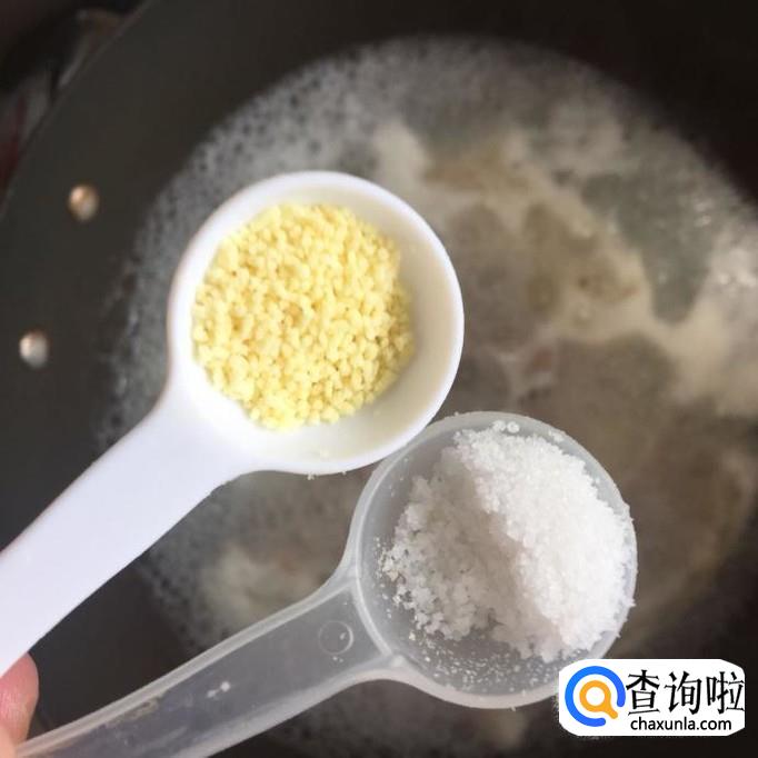 接着往锅中加入适量的盐巴和味精,如下图所示。