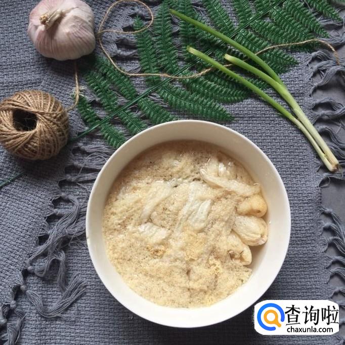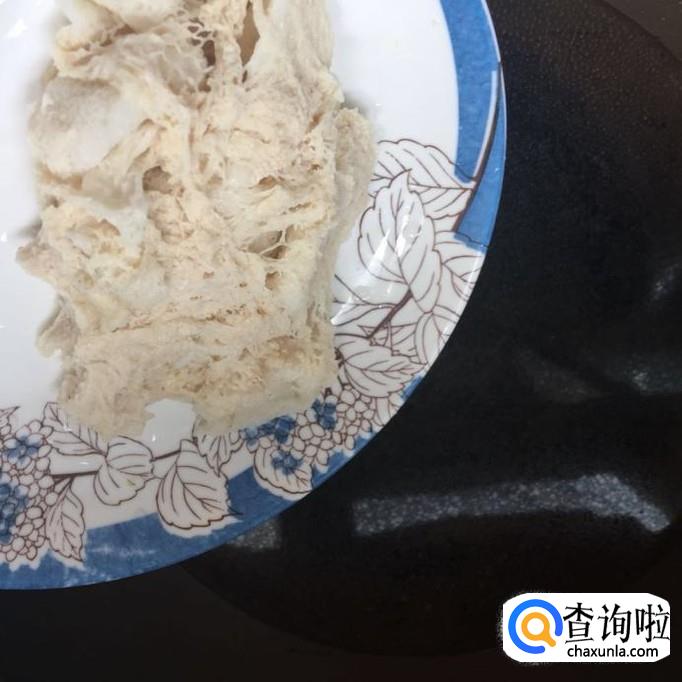 然后将干竹荪放到容器中加入适量的白开水泡两个小时,如下图所示。