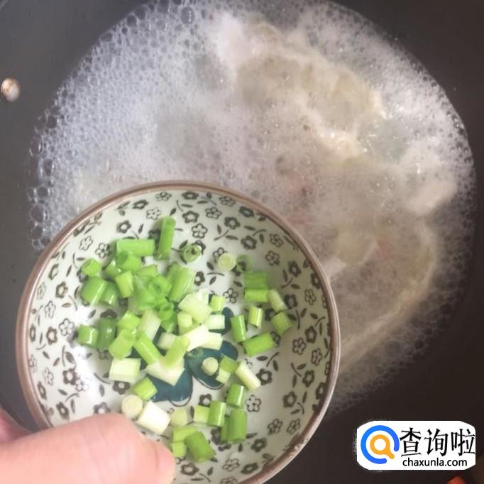 香葱切成葱花,撒入锅中煮两分钟,如下图所示。